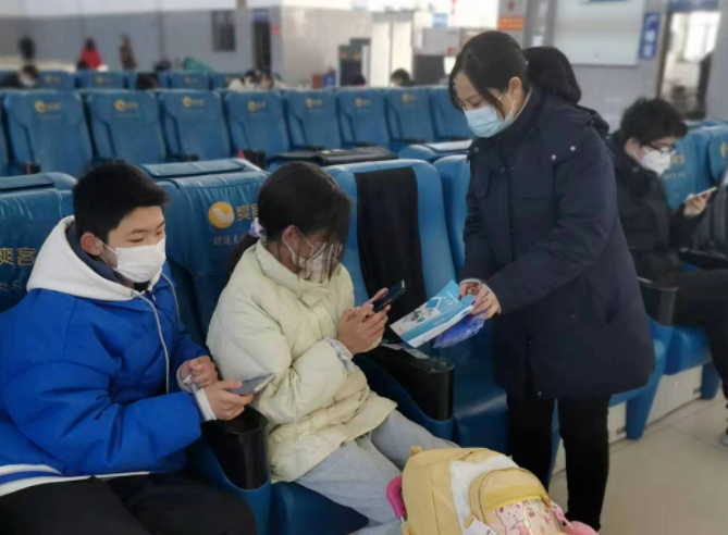 1月29日,長(zhǎng)途客運(yùn)分公司黨支部聯(lián)合江西師大附中青少年開展“成就他人甜在我心”志愿者活動(dòng),為廣大旅客提供便