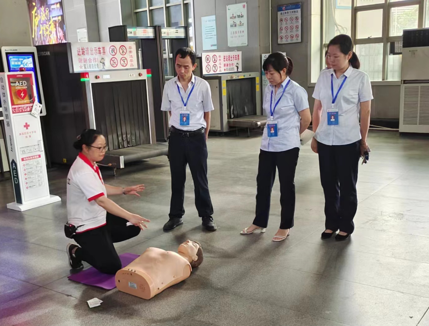 7月31日,九江長(zhǎng)途汽車站邀請(qǐng)濂溪區(qū)紅十字會(huì)急救專家在候車廳為車站一線服務(wù)人員舉辦了旅客應(yīng)急救護(hù)技能培訓(xùn)